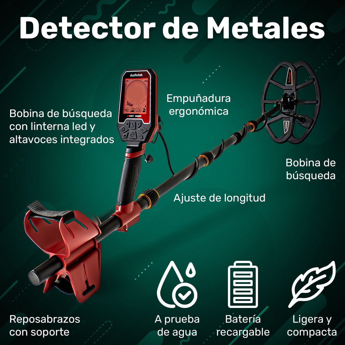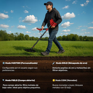 - Detector Metales 5m Sumergible 4 Modos Recargable Luz Led