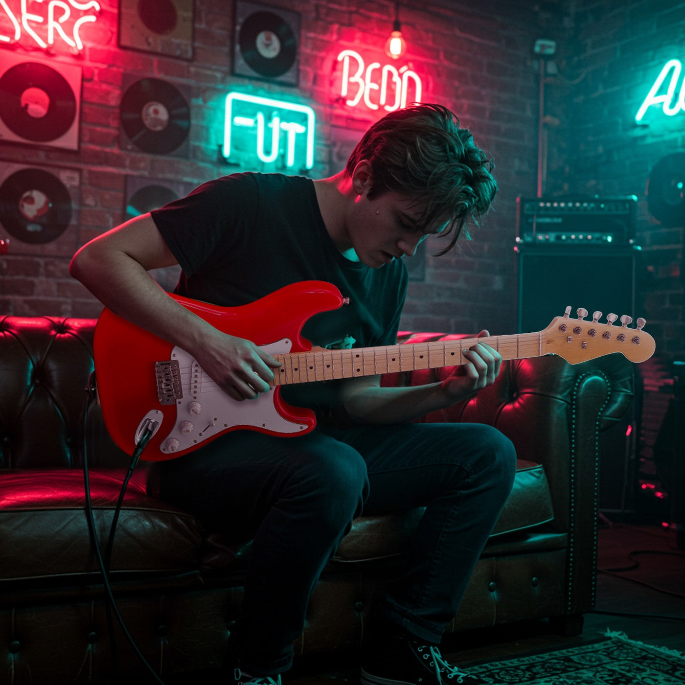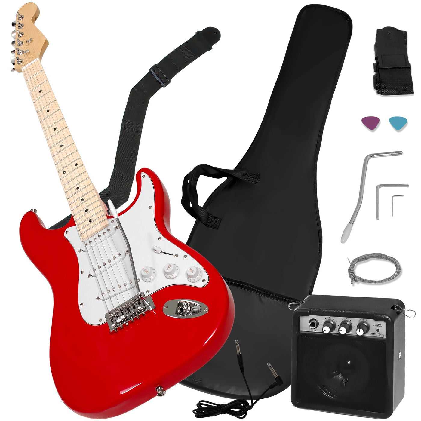 - Guitarra Electrica Accesorios + Amplificador De Regalo 9v 5a roja
